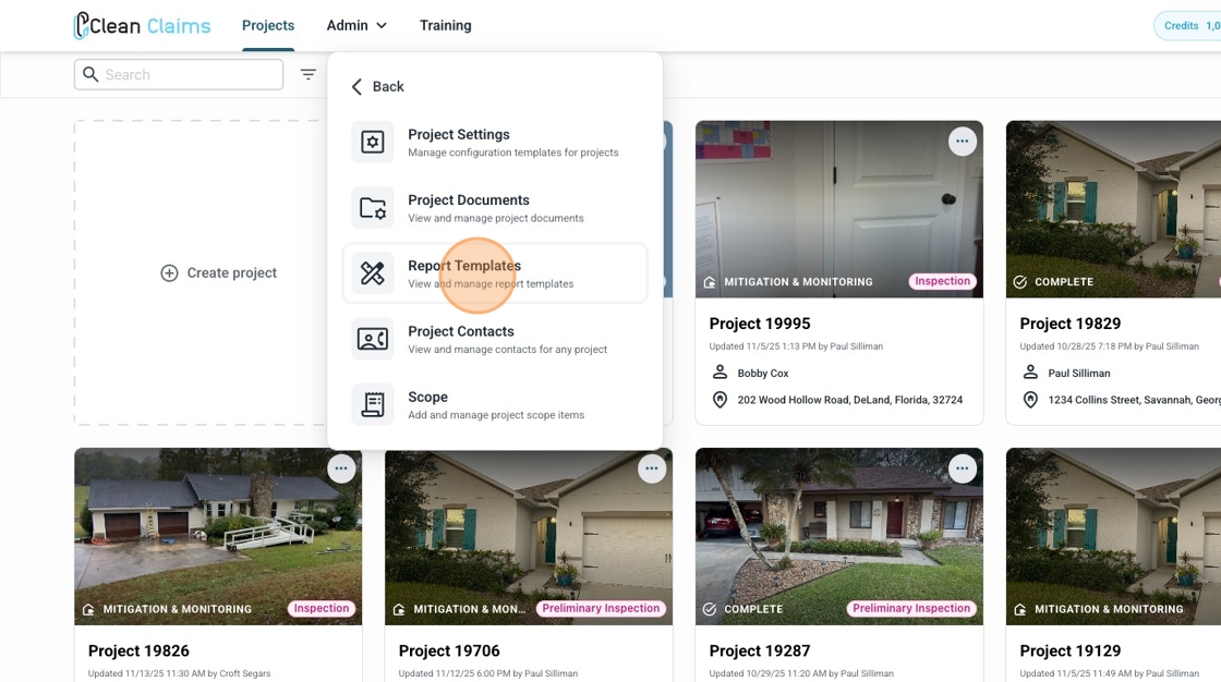 Creating a report with a template in Clean Claims - Mobile Made by Paul Silliman with Scribe Please reach out to support@cleanclaims.com with any questions or issues. 1. Click Project Actions 2. Tap Report 3. Tap the template icon 4. Select the ...
