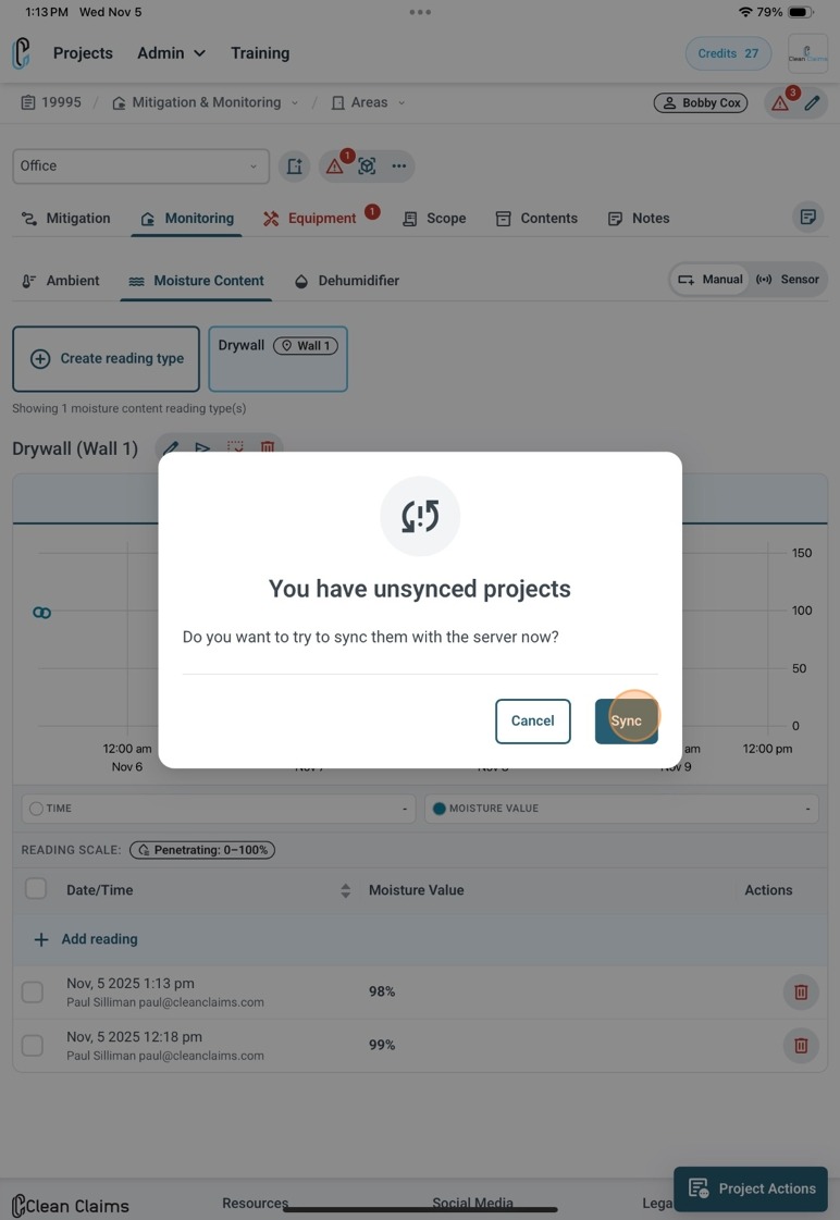 Si vous téléchargez un projet via l'une de nos intégrations, vous devrez le synchroniser avec Clean Claims tout en étant connecté à Internet. Le téléchargement de projets hors ligne est impossible.